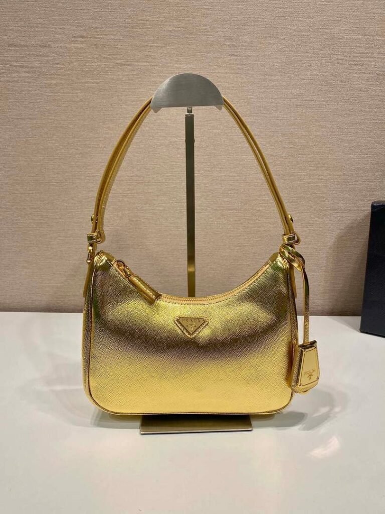 Replica Prada 1BC169 Prada Cleo satin bag with appliqués Gold