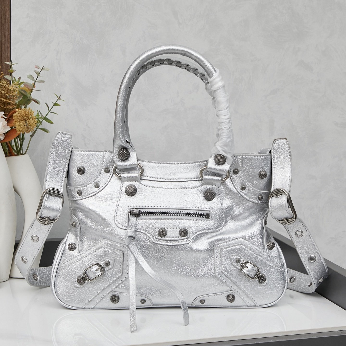 With box. Neo classic #motorbike bag# | 🖤 First of all. I love all motorbike elements. Whether it’s Le Cagole or this Neo. Sisters who like large capacity can go for this one. The irregular cracked texture of oil wax leather is matched with a large number of hardware accessories. There are also tassel pull tags + heart-shaped mirror + coin purse pendant. The charm of maximalism comes from this. Cool and hot girls. go! Motorbike bag #fashionable item# Fashion is hidden in the details # Fashion bag # Fashionable item#. Size: 32x22x6.