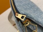 M57790. This small Coussin handbag features the Monogram pattern woven into cotton denim fabric. It presents the Monogram Denim pattern through bleaching and sand washing processes. vividly showing summer charm. The rugged chain and leather shoulder strap are both detachable. Size: 26x20x13cm.