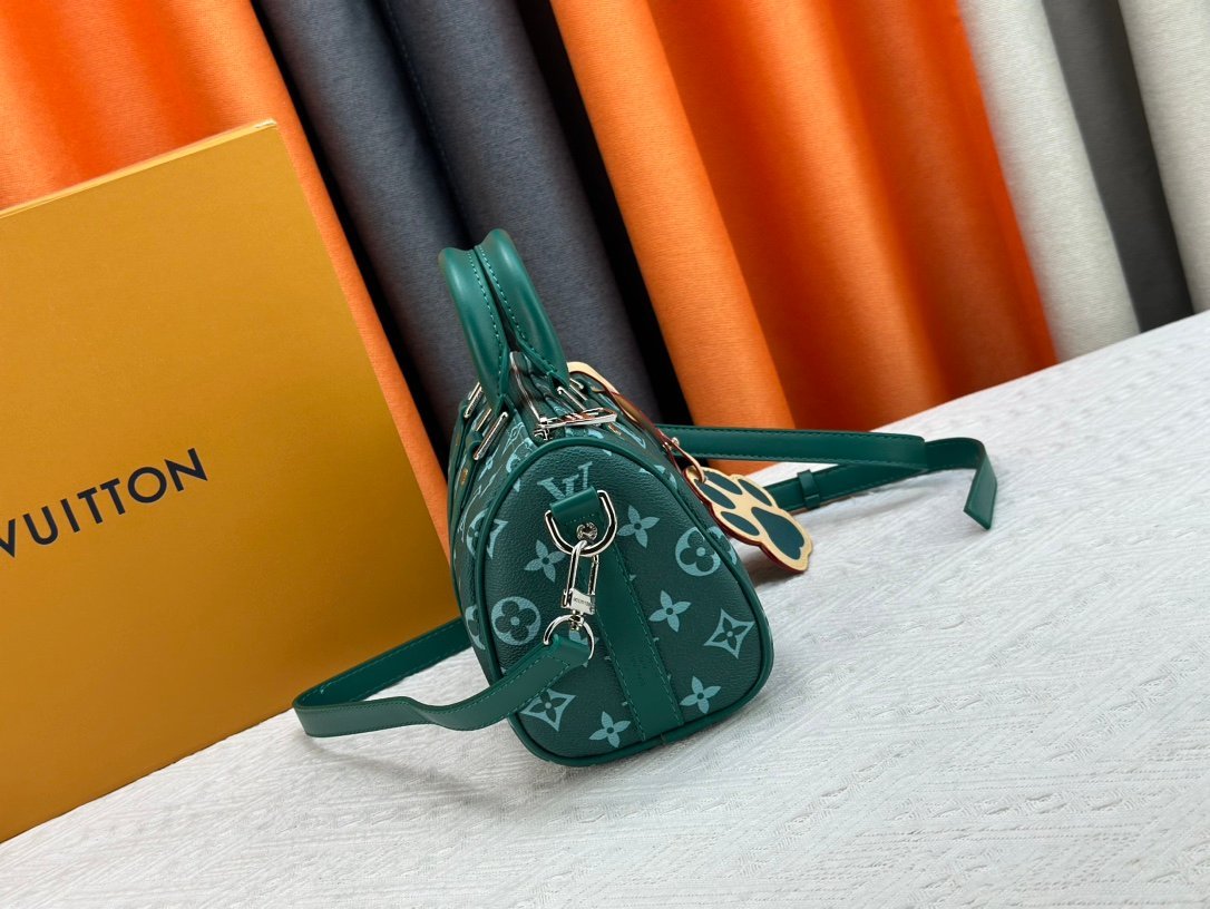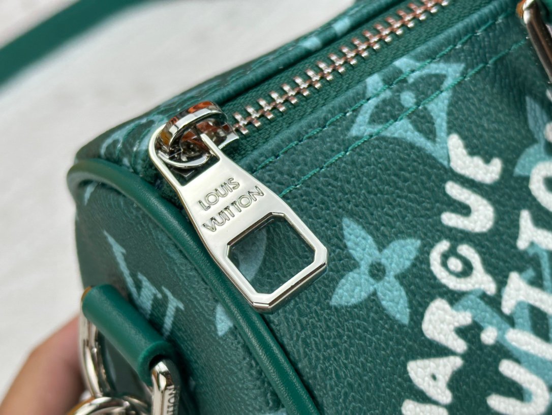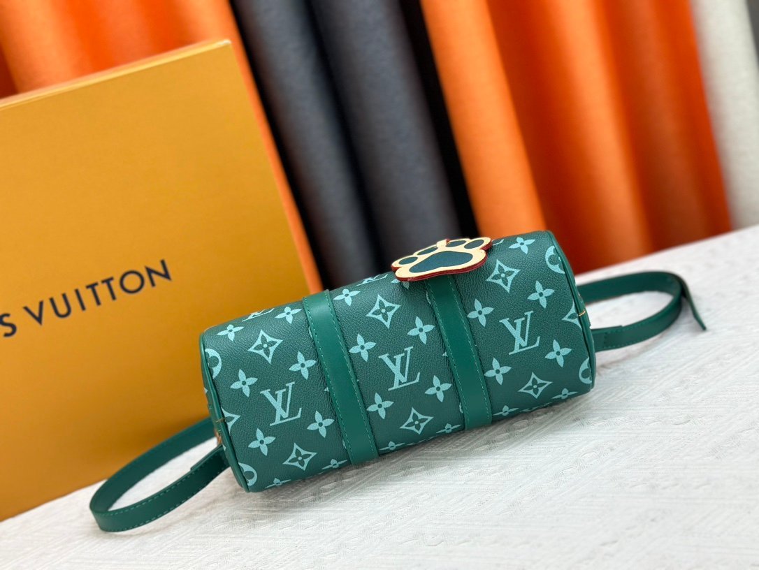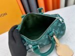 This handbag condenses the classic silhouette of the Keepall travel bag. It is made of Monogram embossed Taurillon leather. The compact configuration is suitable for storing small items such as mobile phones and wallets. Skillfully use the leather handle and detachable shoulder strap to easily follow the trendy style. Detailed characteristics. Size: 25 x 15 x 11 cm.