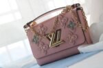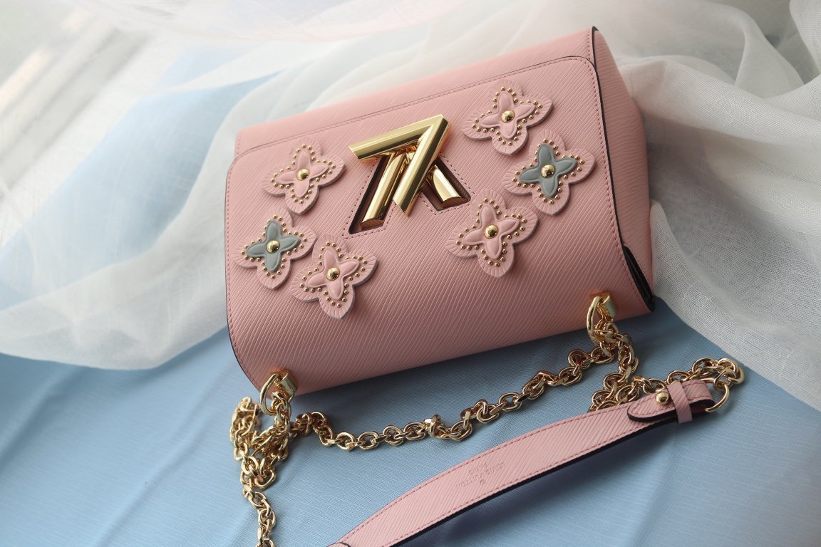 The Flower Tinsel theme in Louis Vuitton’s haute couture series is for the Twist medium handbag. adorned with a unique pattern: multiple layers of leather and studs reinterpret the Monogram flower. The rivets of the brand’s classic luggage are transformed into elegant decorations. complementing the exquisite black Epi leather body. The shape is small. and the unique curved base increases the capacity of the handbag. The adjustable chain is suitable for cross-body or elegant shoulder carrying. Medium size: 23*18*8cm.