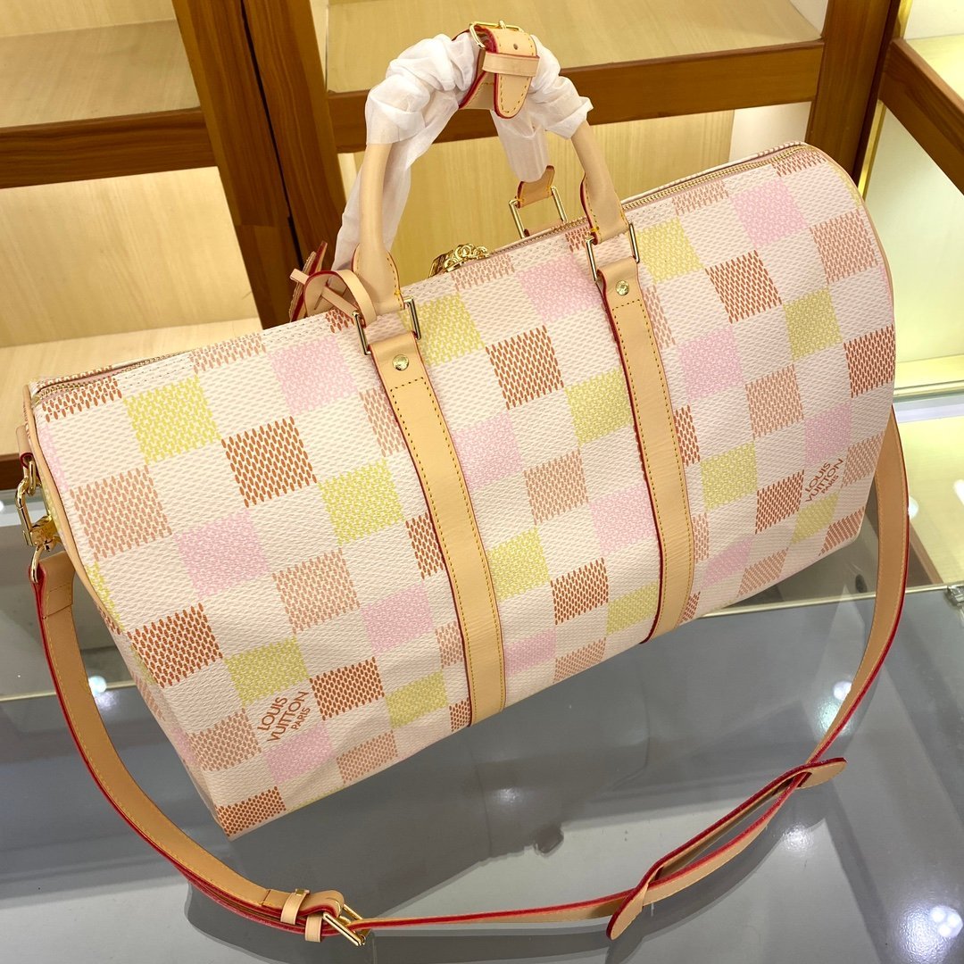Keepall is a classic in Louis Vuitton’s travel bag series. This large Keepall has a monogram canvas body and is equipped with a detachable leather shoulder strap and a detachable leather document holder. Size: 50.0 x 29.0 x 23.0 cm.