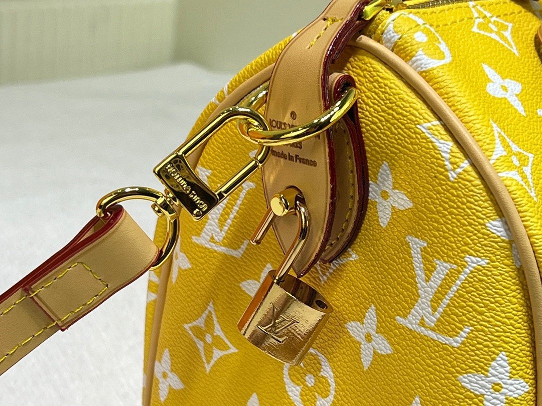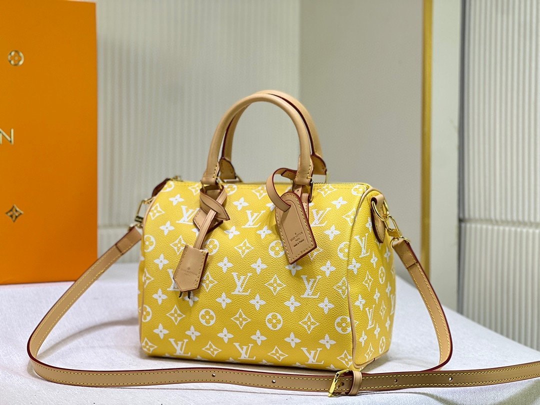 This Speedy P9 Bandoulière 25 Monogram Leather handbag is made of soft cowhide leather and reproduces the refined look of canvas printing with the Monogram pattern. Dazzling metal pieces. sheep leather lining and nameplates together confirm the unremitting pursuit of details by creative director Pharrell Williams. Size: 25x15x15cm.