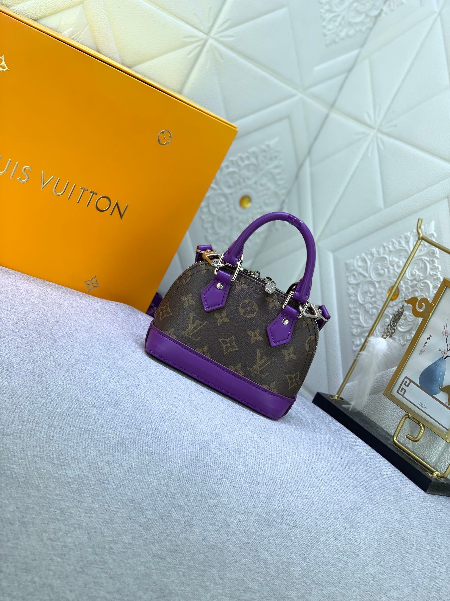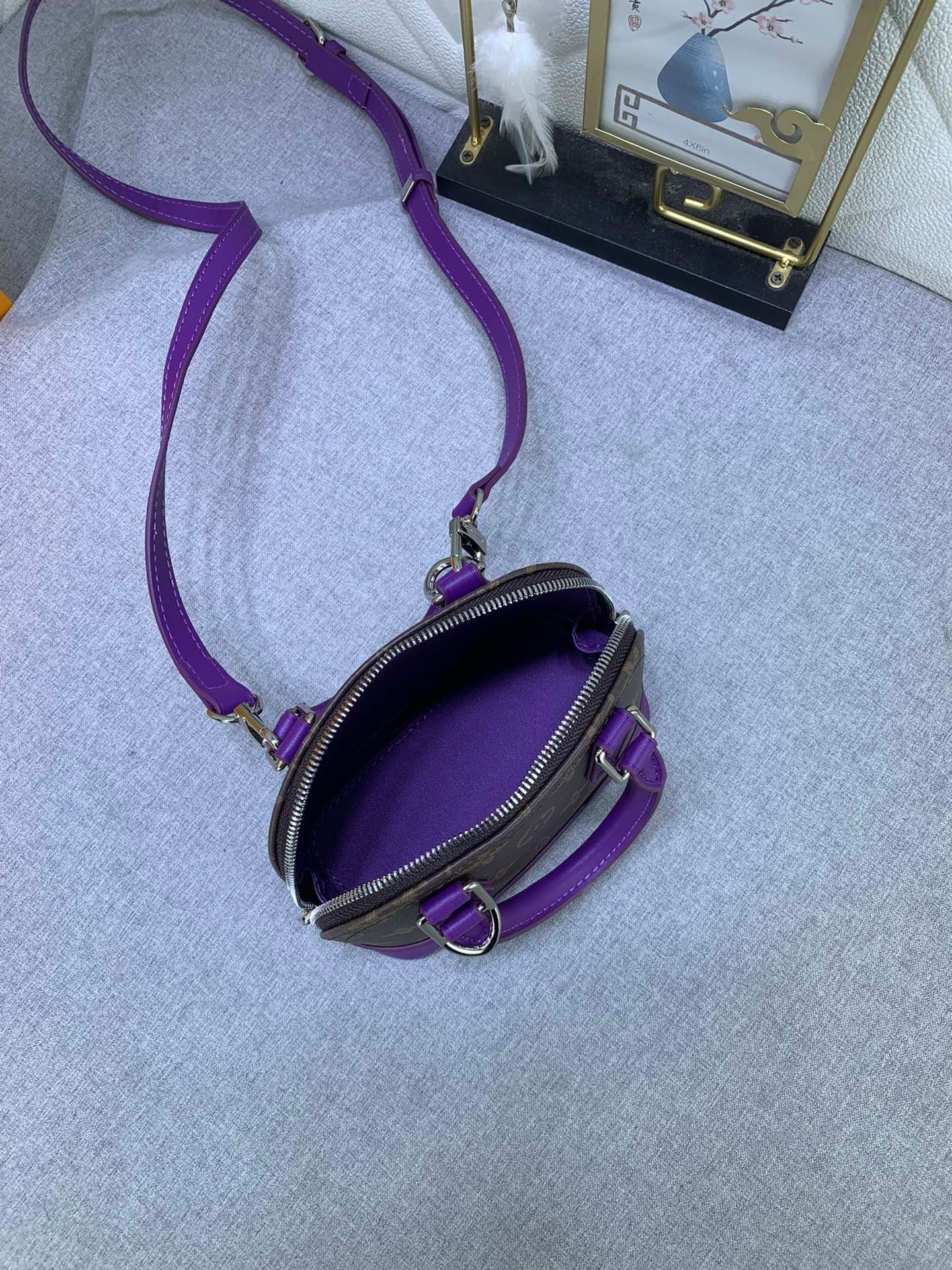 Mini shell bag series. New launch Nano Alma handbag. The Nano Alma reproduces the symbolic Alma bag in a miniature version. Louis Vuitton’s signature Monogram canvas material coordinated with decorations of natural leather. A delicately crafted item that combines traditional charm and modern functionality. When the double zipper is opened. the interior design with surprisingly ample storage space is revealed. With two leather handles and an adjustable and detachable shoulder strap. multiple styles can be created.