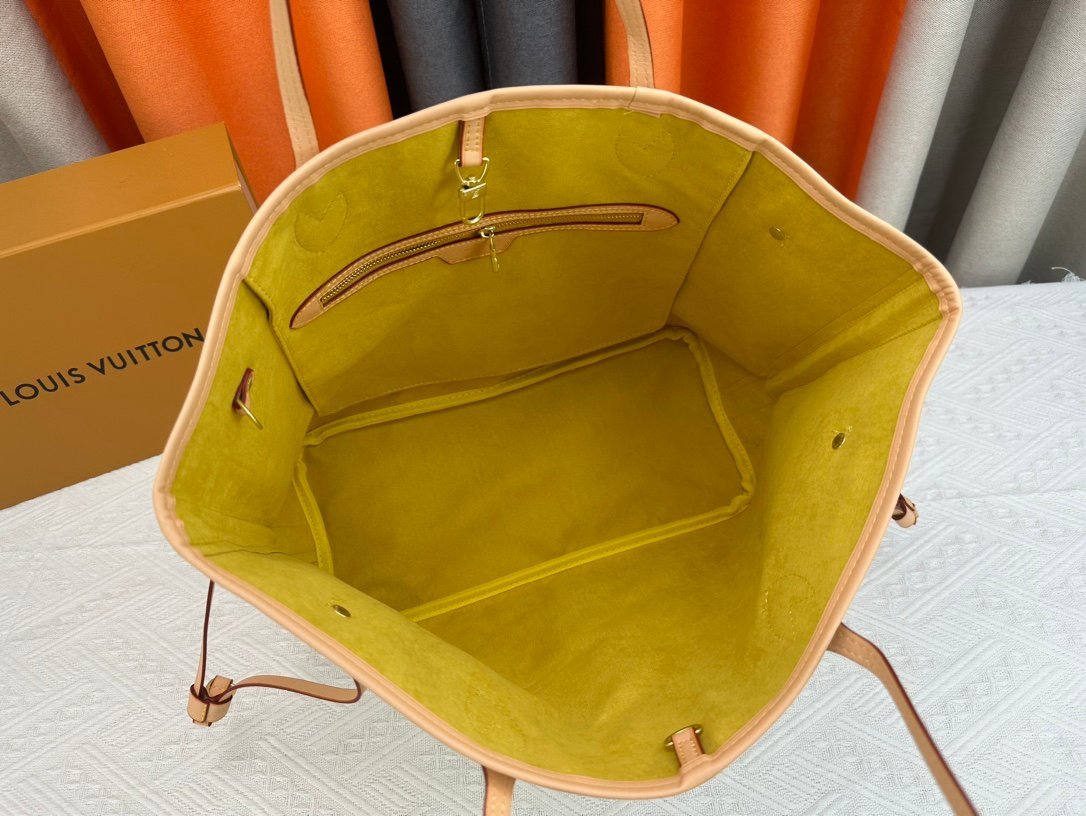 Shopping bags 💋💋 Louis Vuitton Neverfull take on the classic handbag and explore the exquisite details inside the bag. The redesigned inner bag features fresh fabric linings and vintage details inspired by the Louis Vuitton archives. most notably the detachable zip-up handbag. which can be used as a delicate clutch bag alone or as an extra pocket. Bright lining tones add more lively and lively feel to the Monogram classic canvas. Size: 32 * 29 * 17cm